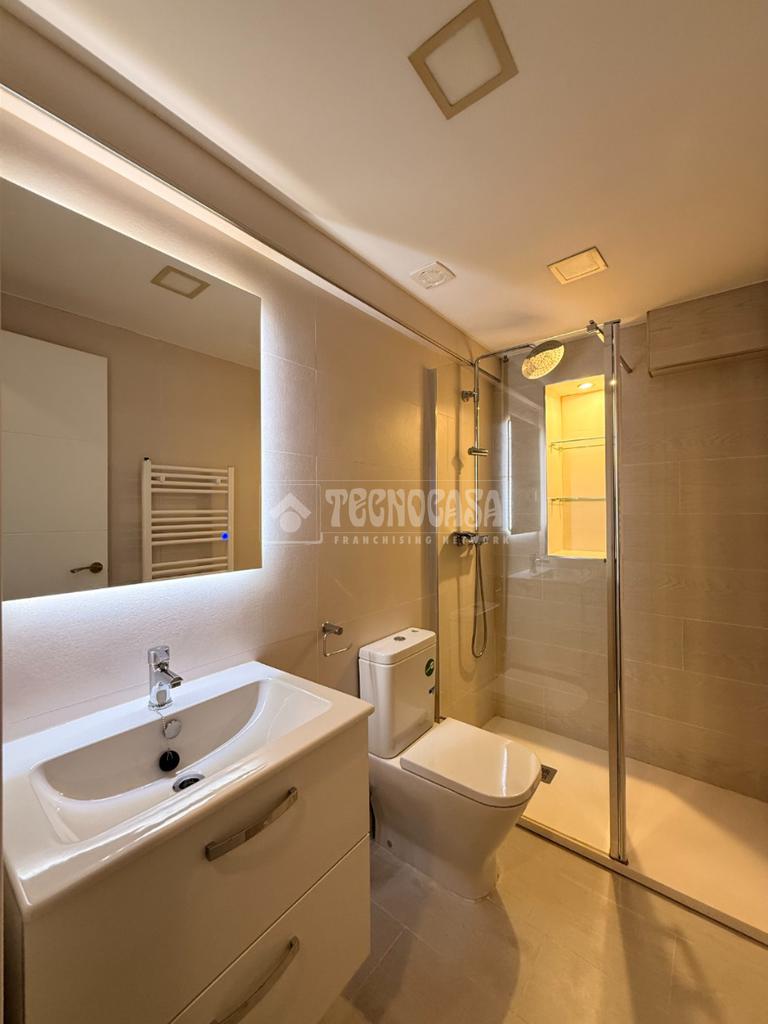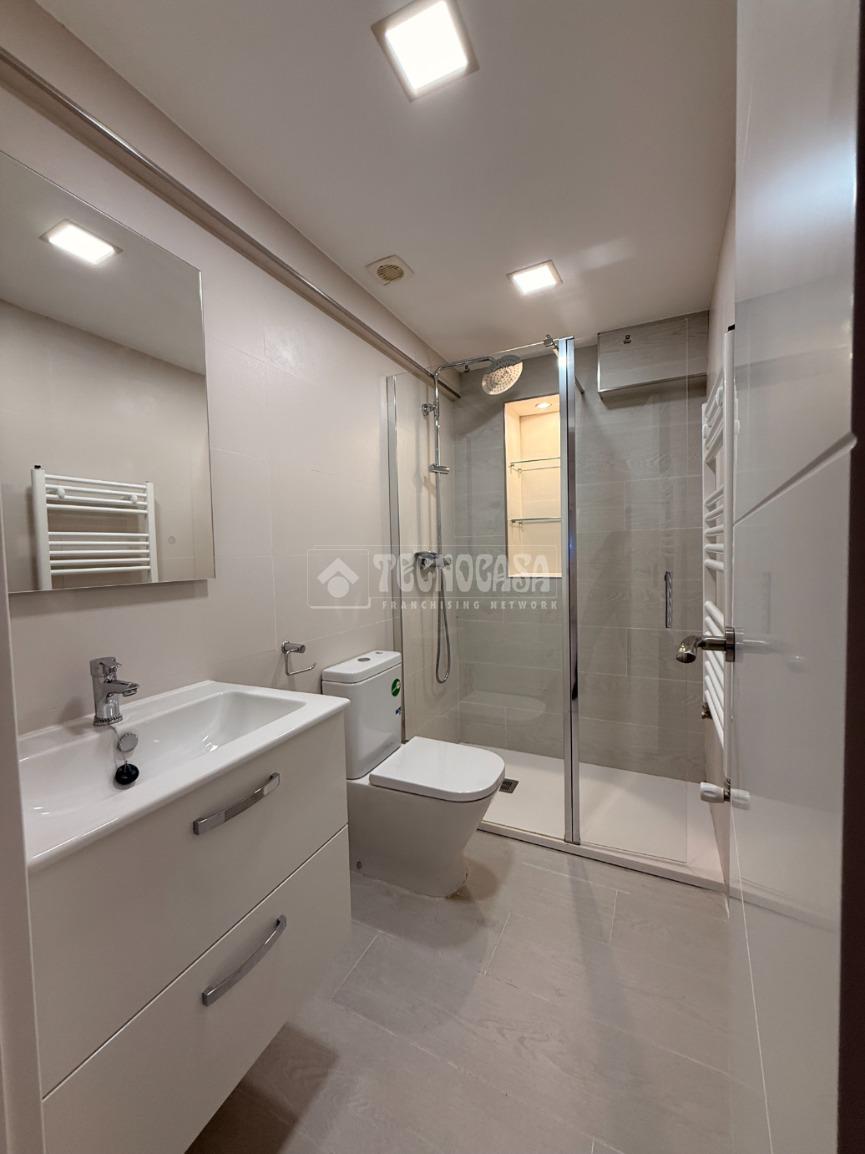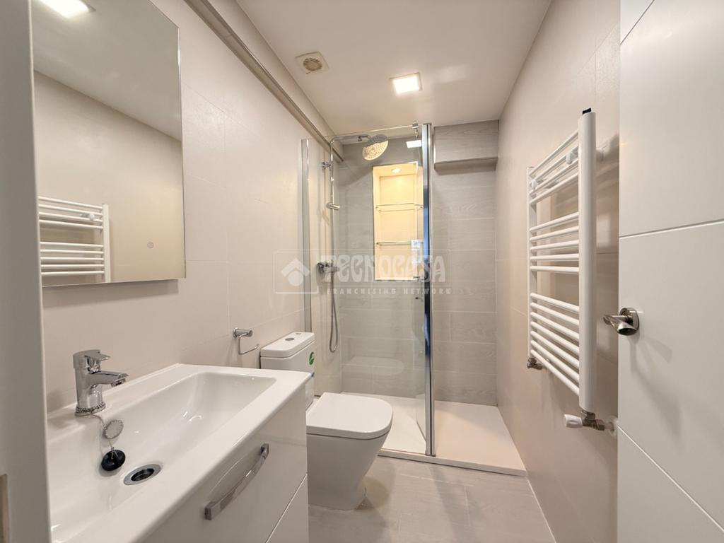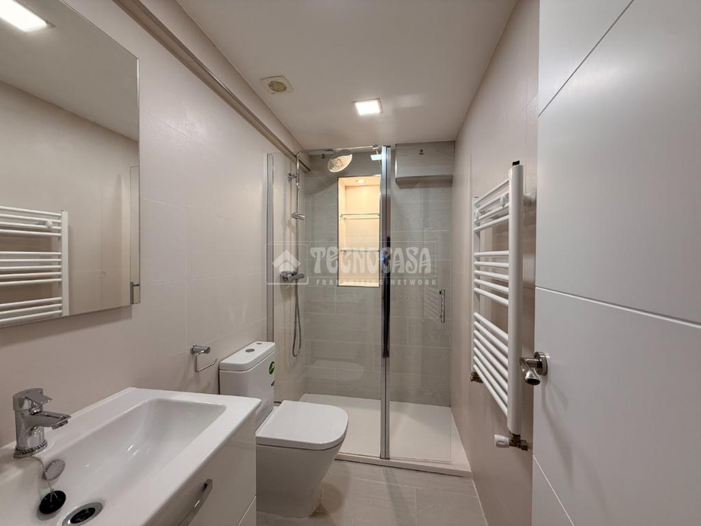 Completamente renovado, con plato de ducha moderno, mampara de cristal y sanitarios nuevos.